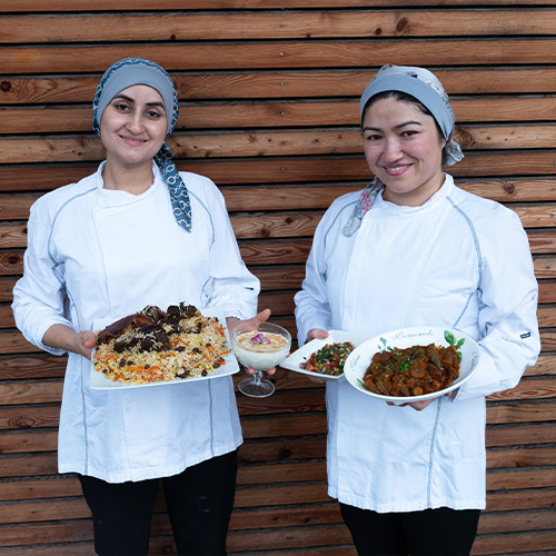 Kabuli Palau, Ferni, Khoresht e Bamieh: Hinter diesen wohlklingenden Namen verstecken sich köstliche Speisen der afghanischen Küche. Farzana und Zahra aus unserem Küchenteam laden dich ein, die Aromen ihrer Heimat, wie Kardamom, Rosenwasser und Kreuzkümmel zu entdecken.
