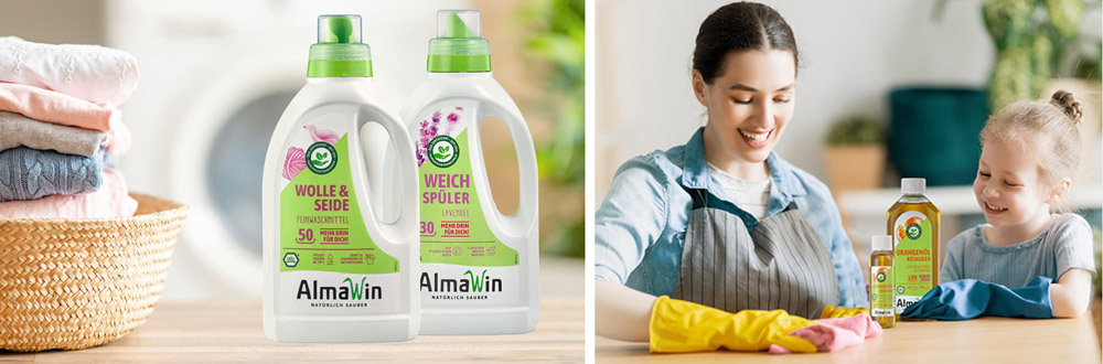 AlmaWin steht seit Anfang an für leistungsstarke Wasch- und Reinigungsmittel und beweist, dass auch mit natürlicher Chemie hygienische Sauberkeit hergestellt werden kann.