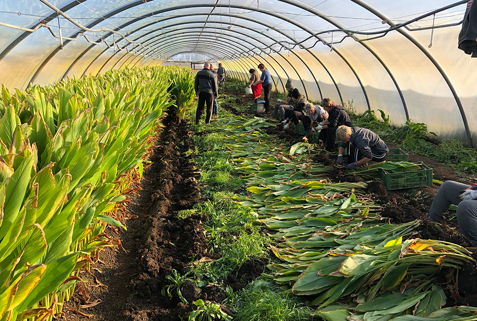 Nach einer langen Kulturdauer von zehn Monaten können nun erstmalig rund 300 kg Ingwer und 300 kg Kurkuma geerntet werden. „Neben einem frühen Pflanzbeginn haben die Wetterbedingungen im heurigen Jahr sicherlich mit unterstützt, dass die Pflanzen in Österreich erntereif wurden“ freut sich der für den Anbau und die Vermarktung verantwortliche Christoph Mick.