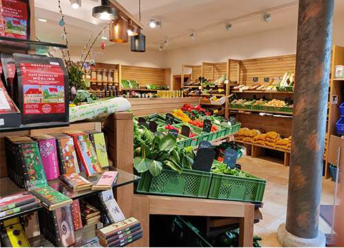 Zuhause ist der Biohof Broschek in Guntramsdorf im Wiener Becken, wo im Ortszentrum auch der hofeigene Bioladen seinen Platz findet. Der Bio-Hofladen wurde erst kürzlich renoviert und wird von Tochter Elisabeth geführt. Neben hofeigenem Gemüse, einer Unverpackt-Station mit Getreide, Samen und Nüssen sowie ausgewählten Milch- und Fleischerzeugnissen, findest du dort auch eine bunte Auswahl an Obst und Gemüse von unserer eigenen Landwirtschaft und unseren Bio-Partnern. Den Hofladen der Familie Broschek beliefern wir bereits seit 25 Jahren. „Uns verbindet eine langjährige Partnerschaft in beide Richtungen“ so Günter Achleitner.