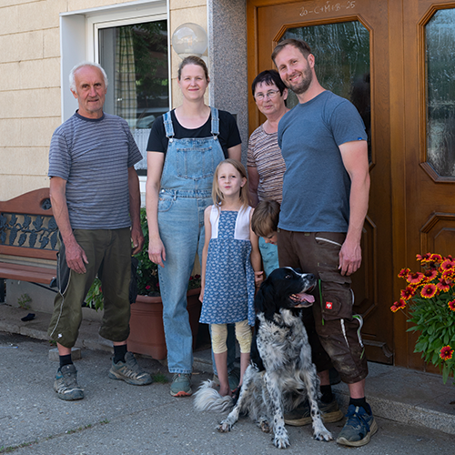 Im November 2021 übernahmen Sohn Michael und seine Frau Barbara mit den beiden Kindern Helene und Sebastian den Betrieb. Mit Hofkatze Carlos und Hofhund Asta ist die Familie komplett. Seit Beginn an arbeiten wir mit Familie Holzer zusammen, die uns mit frischen Gemüsesorten wie Fenchel, Petersilie, Jungzwiebel, Kohl, Spargel, Melanzani und vielem mehr beliefern. In den Herbstmonaten versorgen uns die Holzers zusätzlich mit Pak Choi, Petersilie und Mairübchen.