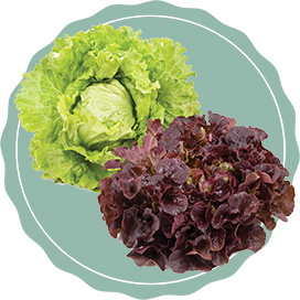 ... ernten wir auf den eigenen Feldern von Mai bis Ende September. Kopfsalat (egal ob grün oder rot) hat einen deutlichen Eigengeschmack und lässt sich vielseitig verwenden: vom klassischen Beilagensalat bis hin zur Salattorte.