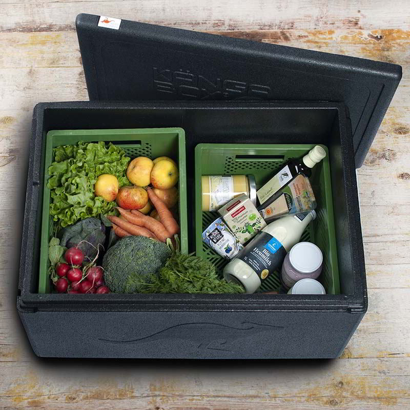 Die Coole Kiste bietet Platz für 2 Napfkisten in allen Größen. Sie schützt vor Hitze, Kälte & äußeren Einflüssen. Sie ist robuster und beständiger, als die Thermobox.