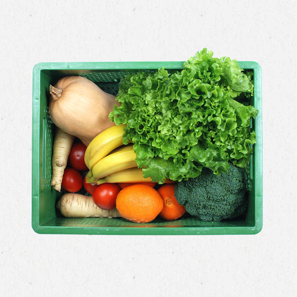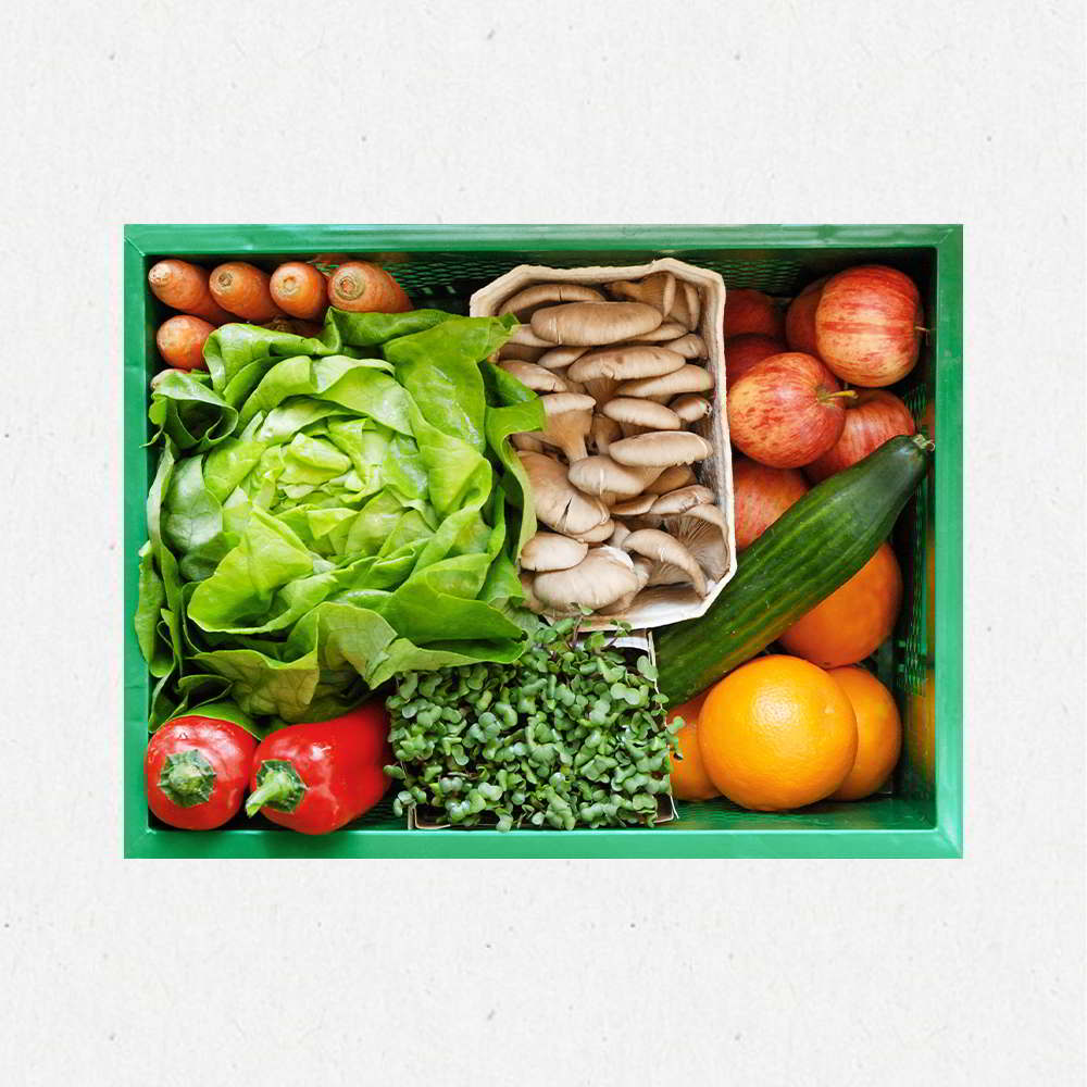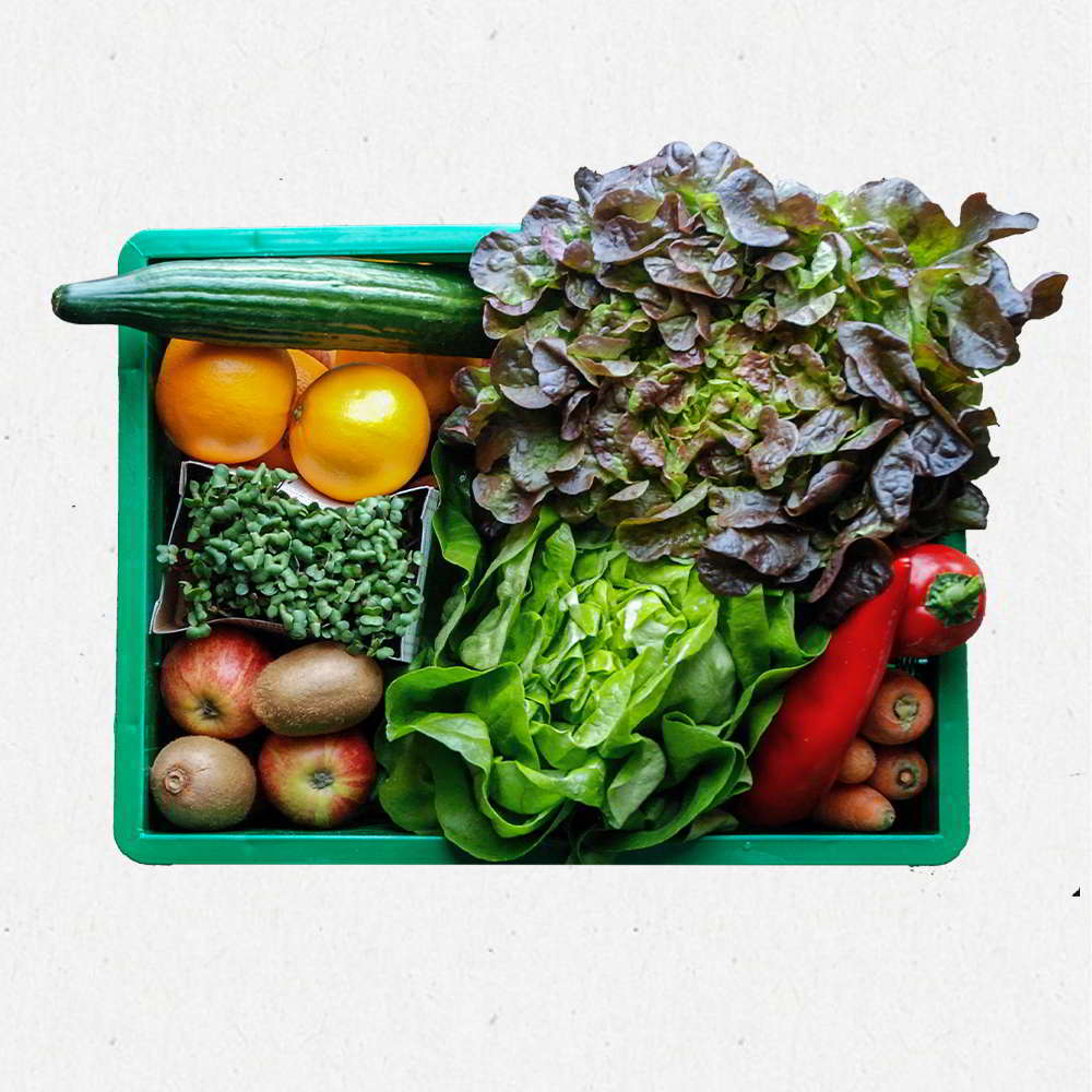 Die Bunte, gefüllt mit Obst, Salaten, Kräuter, Koch- und Jausengemüse,... ist unsere beliebteste Biokiste.