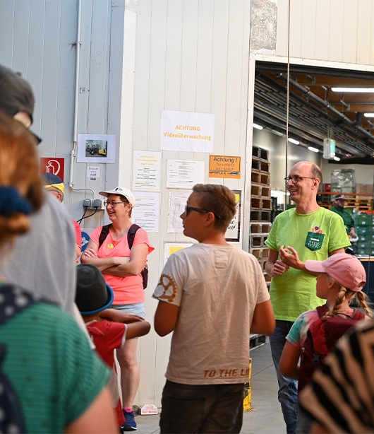 Nach unserem Hoffilm besichtigst du bei einem Rundgang unseren Biokisten-Packbetrieb, wo du einen exklusiven Einblick hinter die Kulissen bekommst. Dort zeigen wir dir, was es mit unserer Biokisten-Hochschaubahn und mit unserem Schlaraffenland auf sich hat.