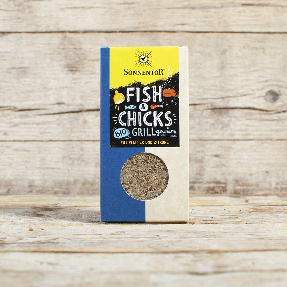 Die feine Gewürzmischung Fish & Chicks ist eine Komposition aus frisch-fruchtiger Zitrone und scharfen Pfeffer - der ideale Begleiter für Fisch & Huhn