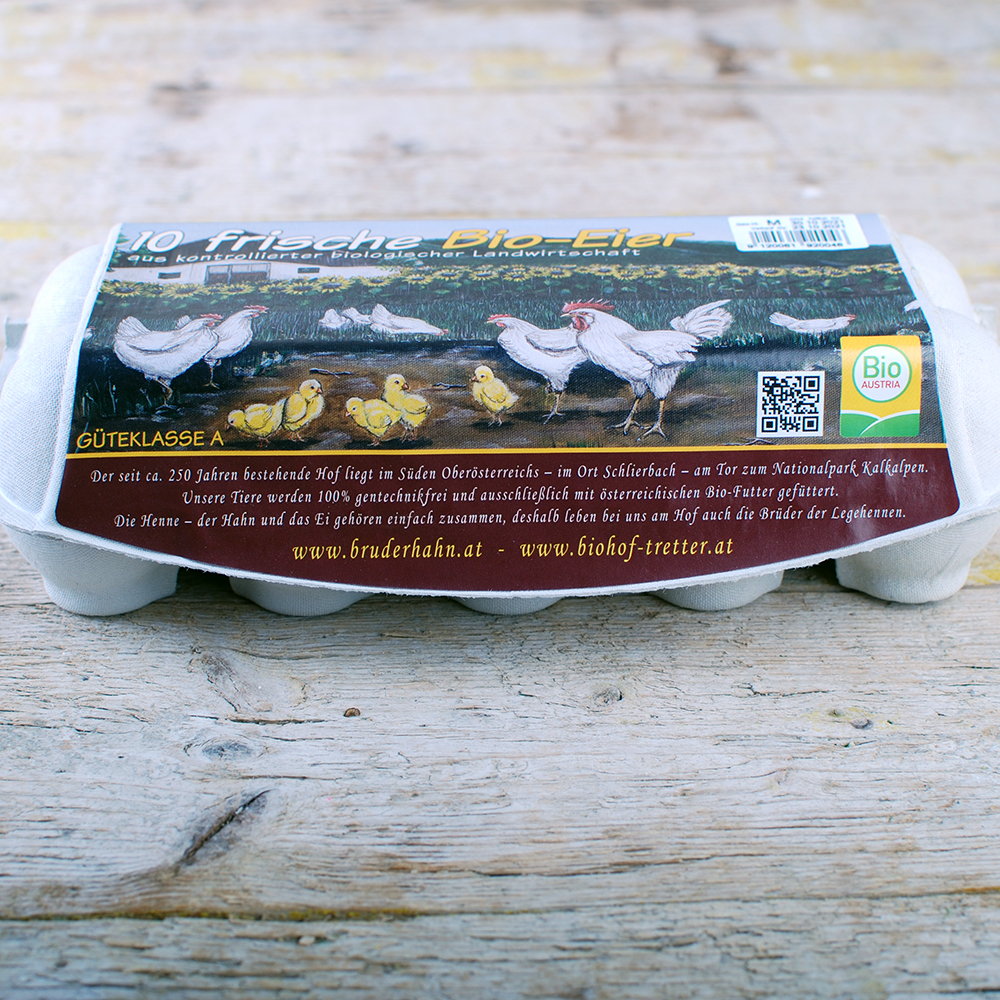 Die frischen Freilandeier kommen direkt vom Biohof Tretter aus Schlierbach und werden nur von glücklichen Hühnern mit viel Freilauf gelegt
