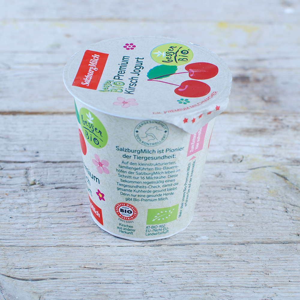 Das cremige Fruchtjoghurt Kirsche ist eine Komposition aus mildem Joghurt 3,6 % Fett und leckeren Kirschen – perfekte Größe für zwischendurch