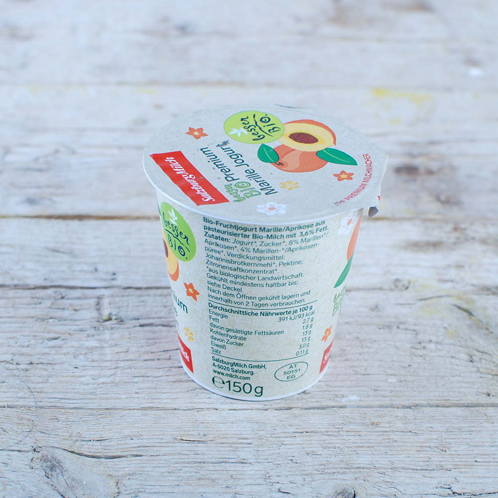 Das cremige Fruchtjoghurt Marille ist eine Komposition aus mildem Joghurt 3,6 % Fett und leckeren Marillen – perfekte Größe für zwischendurch