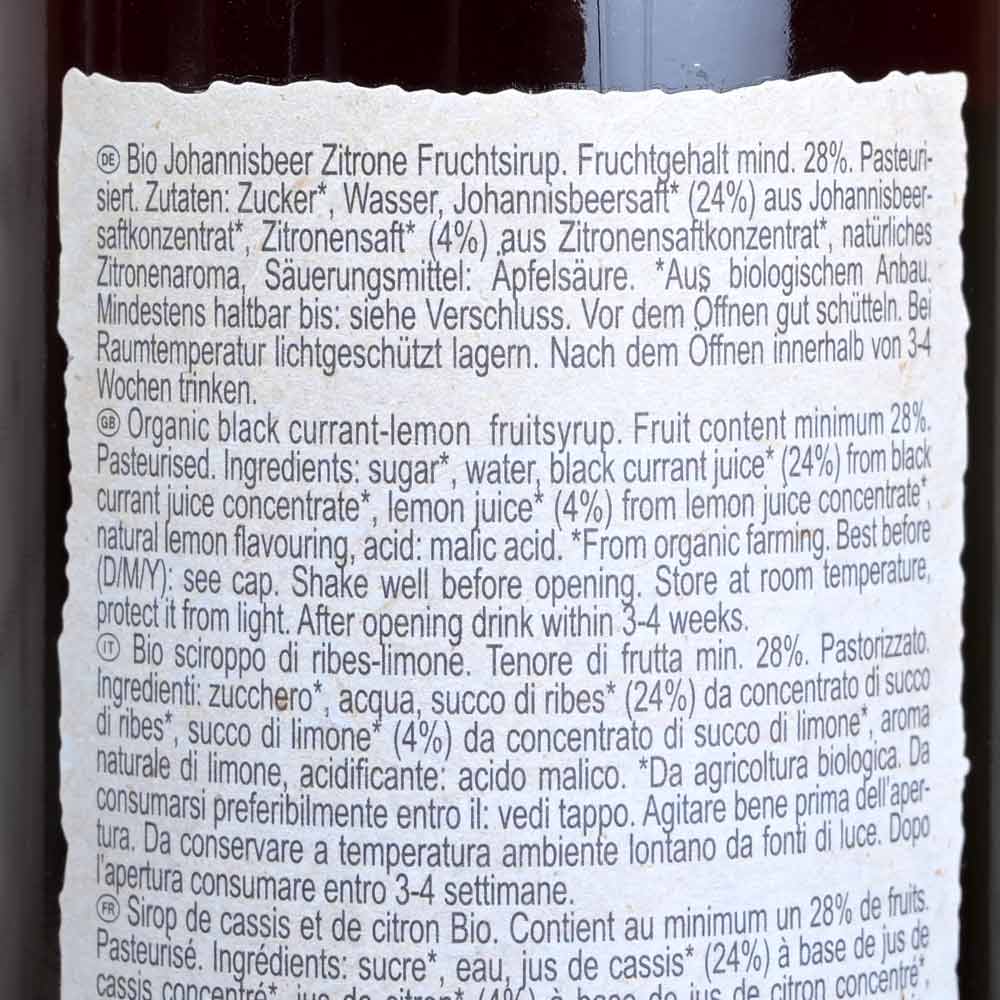Der Fruchtsirup Johannisbeere Zitrone erfrischt mit seiner fruchtigen Kombination aus Johannisbeere und feiner Zitrusnote.