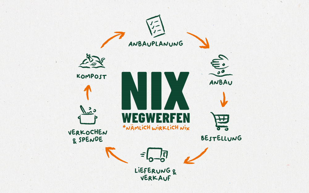 Und das meinen wir auch so, wie wir es sagen. Alles, was nach dem Verkauf unserer Produkte übrigbleibt (und das ist nur rund 1%), verkochen, verarbeiten und spenden wir. Unsere Hausg'mocht Gerichte spielen dabei eine ganz wichtige Rolle. Den letzten, wirklich nicht mehr verzehrbaren Rest kompostieren wir. Mit dem fertigen Kompost düngen wir unsere Felder am eigenen Hof. So macht unser Nix-Wegwerfen-Kreislauf echt Sinn.