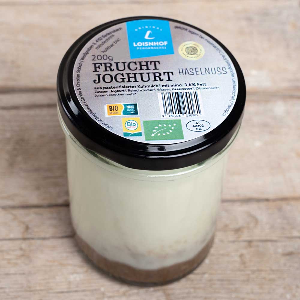 Das cremige Joghurt Haselnuss ist eine perfekte Mischung aus Bio-Heumilch und Haselnüssen – perfekte Größe für zwischendurch