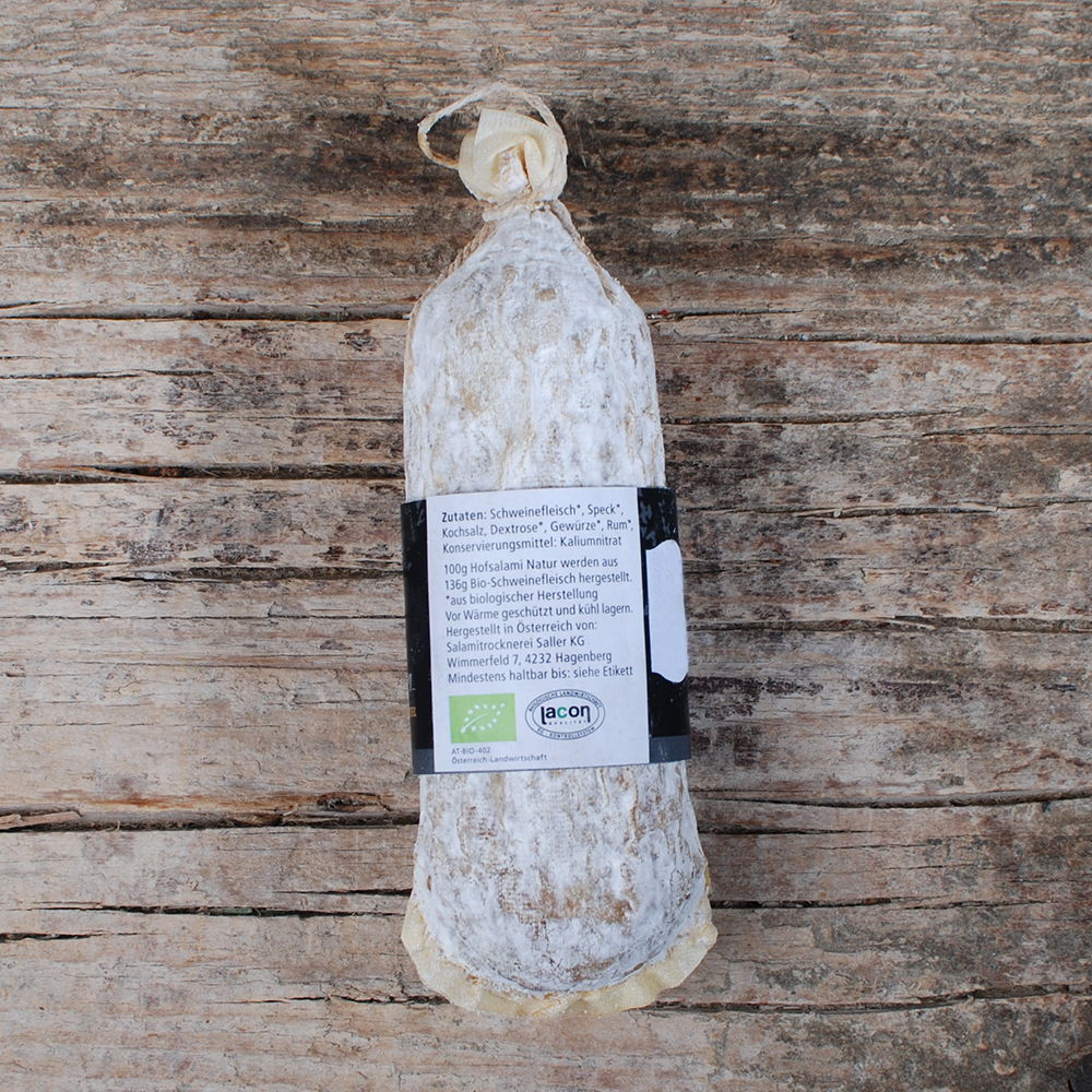 Die g'schmackige Hofsalami natur überzeugt mit einem milden Aroma & feinen Gewürzen – perfekt für eine köstliche Antipasti Platte