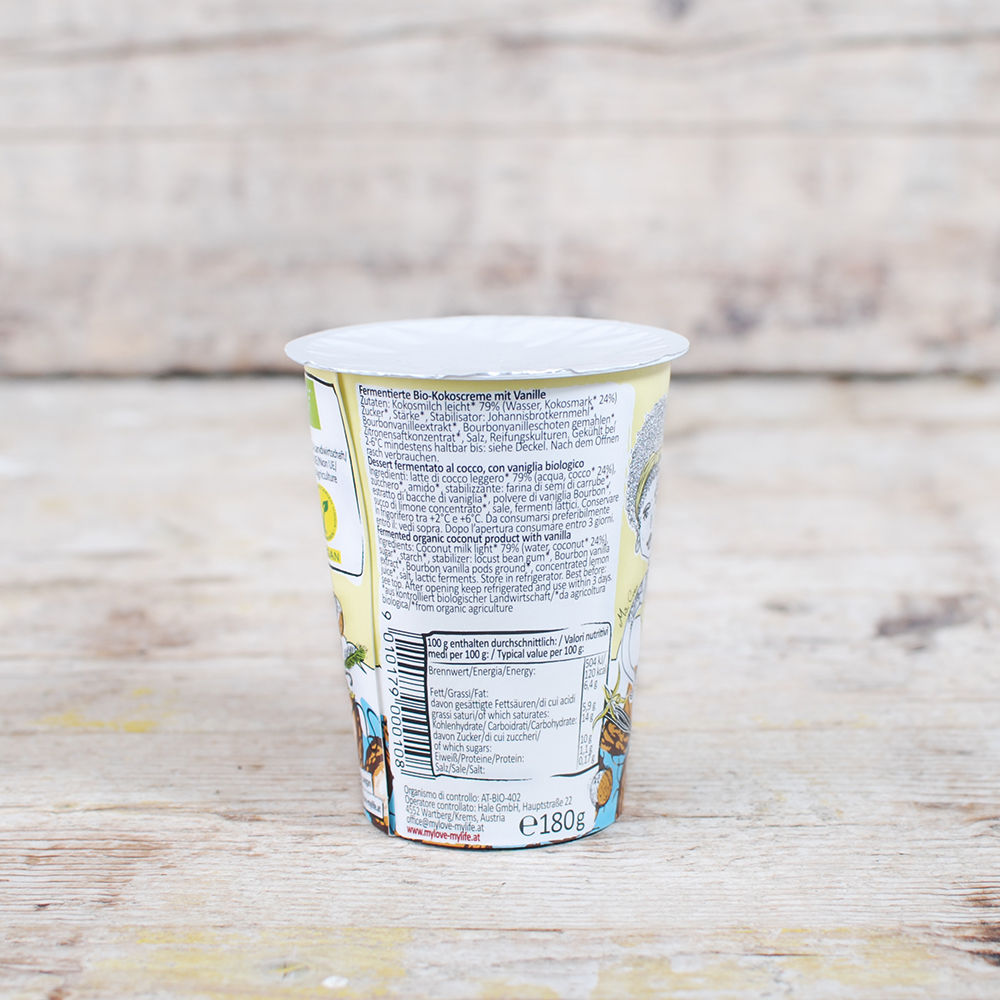 Die rein cremige & pflanzliche Kokoscreme Vanille bietet eine ideale Joghurtalternative für Müslis, Smoothies oder zum einfach so Genießen