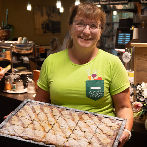 Unsere Biohof-Kuchenbäckerin Elfriede verwöhnt Kunden und Gäste täglich mit leckeren, hausg'mochten Kuchen. Beim Backkurs lädt sie dich ein in ihre Backstube und teilt ihre Geheimnisse mit dir. Schau ihr über die Schulter, pack selber mit an und lerne alle Tipps und Tricks.