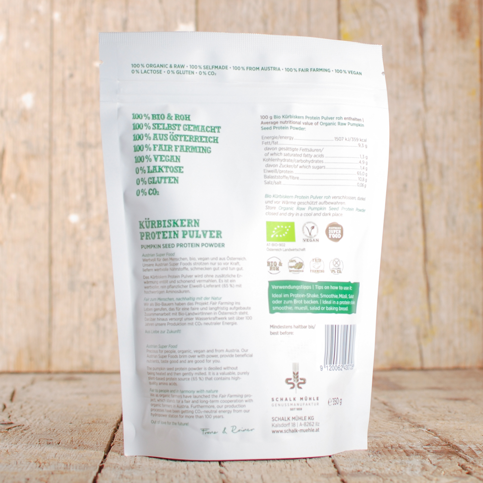 Das Kürbiskern Protein Pulver hat einen sagenhaften Proteingehalt von 65% - entölt & schonend vermahlen für ein rein pflanzliches Proteinwunder