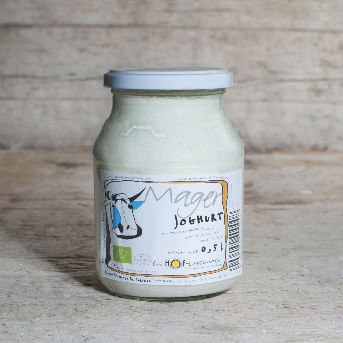Das cremig gerührte Joghurt mager im Glas von den Hoflieferanten stammt aus regionaler Biomilch und ist besonders mild und leicht im Geschmack