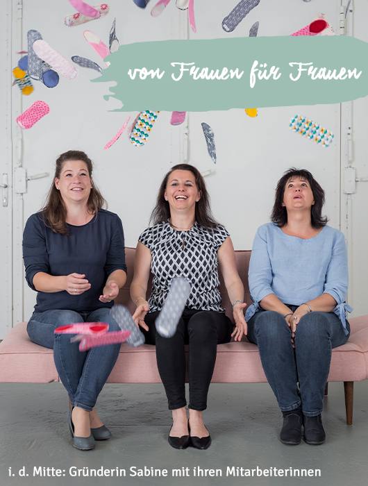 Mit ihrer Idee zu wiederwendbaren Binden hat Sabine nicht nur den Zahn der Zeit getroffen, sondern auch eine echte Alternative für all jene Frauen und Mädchen entwickelt, die auch bei ihrer Monatshygiene auf Nachhaltigkeit setzen.