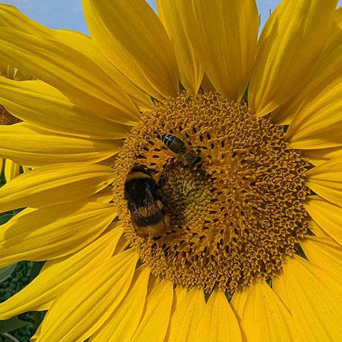 10 Bienenvölker tummeln sich aktuell um unseren Bio-Bauernhof herum. Wunderschöne Blühstreifen und Gründüngungsflächen bieten den Bienen neben unseren Gemüsepflanzen Nahrung. Dafür bestäuben diese fleißig und sammeln Honig. Nicht nur bei unseren Ananaskirschen, Physalis, Paprika und Zucchini spüren wir ihre wertvolle Anwesenheit auch in unseren Erträgen.