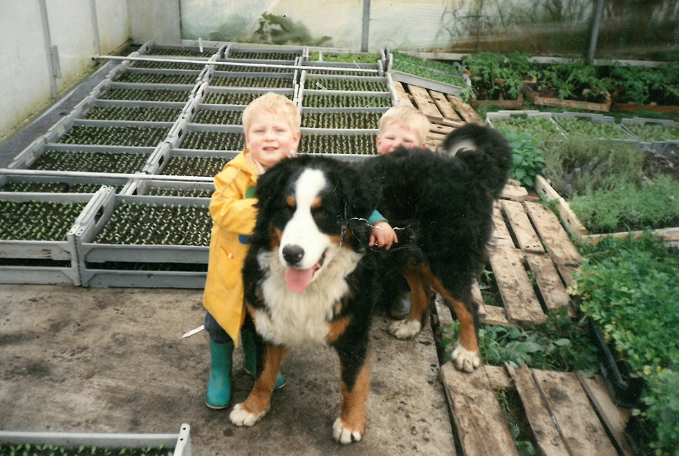 (Bild - aus dem Achleitner-Archiv: Die Achleitner Jungs Andreas und Johannes mit dem damaligen Haus- und Hofhund Bulli)