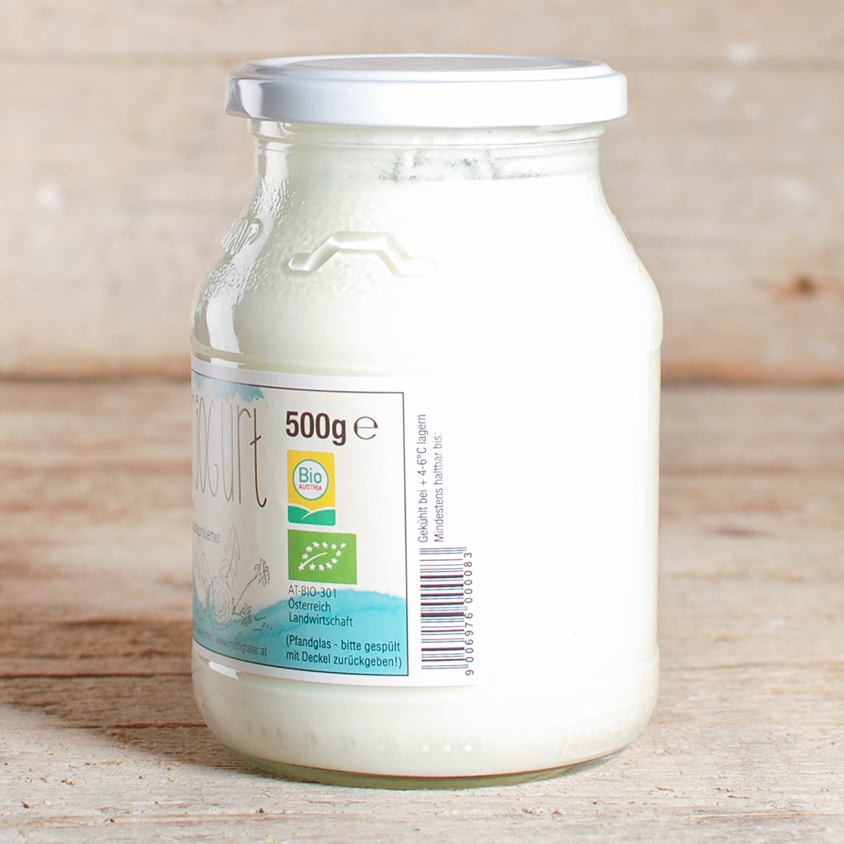 Das cremige Naturjoghurt wird aus frischer Heumilch hergestellt - durch den milden Geschmack passt es perfekt zu Müsli & Desserts