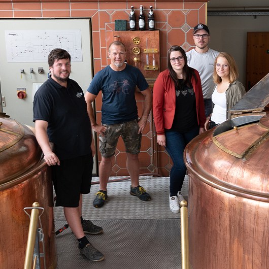 Mit einem kleinen Team bestehend aus Braumeister Tobias, Bierbrauer Matthias & Franz, der für den Vertrieb und die Logistik zuständig ist, werden in der Biobrauerei verschiedenste Bio-Biere und fruchtige, natürliche FRUBY Bio-Limonaden mit weniger Zucker hergestellt.