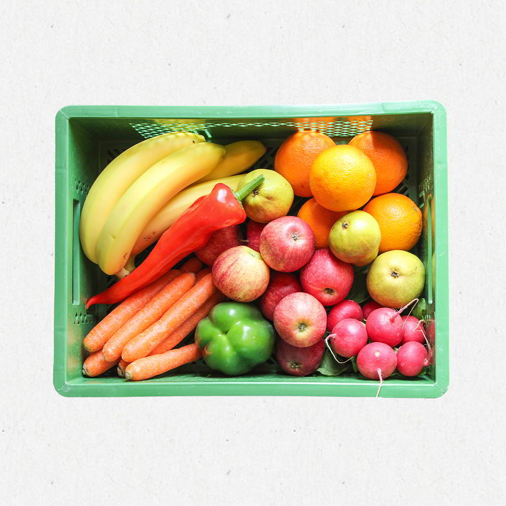 Die gemischte Pausenkiste liefert einen bunten Mix aus handlichem Obst & Gemüse für den frischen Kick im Arbeitsalltag.