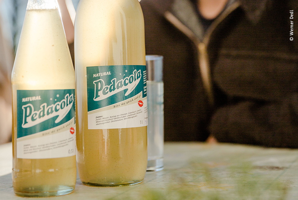 Das aus natürlichen Zutaten hergestellte Cola ist nicht schwarz sondern hell, es enthält kein Koffein und es wird ausschließlich in Sirupform verkauft. Dadurch spart das Pedacola Team, das mittlerweile aus 4 Personen besteht, wertvolle Ressourcen. Es muss nicht unnötig Wasser durch die Gegend gefahren werden und verdünnt ergeben 0,5 Liter Pedacola-Sirup immerhin mindestens 15 Pedacola-Seiterl.
