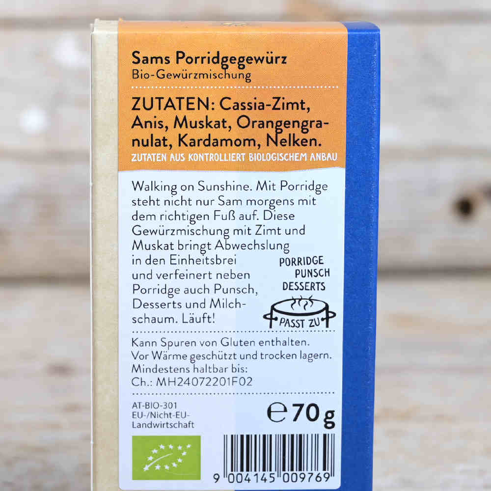 Das Porridge Gewürz vereint Zimt und Muskat und bringt den richtigen Geschmack für dein Joghurt, Milchschaum oder Frühstücksbrei.