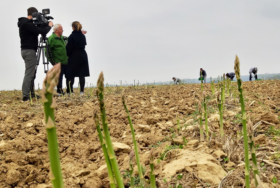 „3 Jahre haben wir den Grünspargel-Pflanzen Zeit gegeben um sich zu entwickeln - heuer wird erstmals geerntet, aber auch nicht die gesamte Saison und die gesamte Fläche, um genügend Material zur Pflanzenstärkung wieder in den Boden einzuarbeiten“, erzählt Günter Achleitner. Im