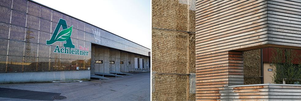 Unser Firmengebäude in Eferding haben wir als Passivhaus mit ökologischen Baumaterialien wie Holz, Lehm und Stroh errichtet. Beim Einsatz der benötigten Baustoffe haben wir auf Regionalität geachtet, so wurde unsere Halle zum Beispiel mit einer Strohdämmung isoliert - das erforderliche Stroh haben wir dazu zum größten Teil auf unseren eigenen Feldern am Bio-Bauernhof in Unterschaden geerntet.