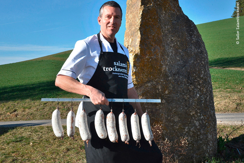 "Ins Mühlviertel geliebt" hat sich Erwin Saller, der als Fleischereitechniker 15 Jahre in der Fleisch- und Wurstindustrie in Deutschland und Österreich tätig war. Immer mehr - immer billiger zu erzeugen war dort die Devise – und das konnte Erwin mit seinen hohen Qualitätsansprüchen und seinem Gewissen nicht mehr vereinbaren. Er beschloss, zum Handwerk zurückzukehren und eine eigene Erzeugung aufzubauen.