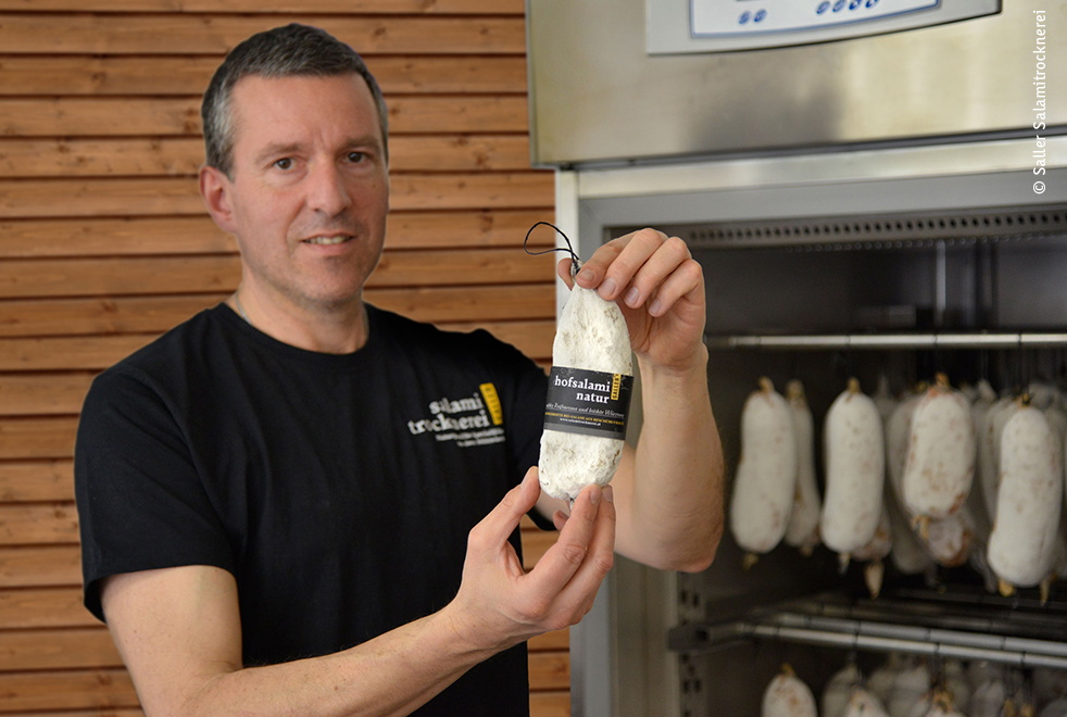 Bei Erwin Saller gibt es übrigens auch Besichtigungsmöglichkeiten im Schaubereich seines Betriebs. Dort führt euch der Chef persönlich durch seinen Betrieb und ihr erfahrt alles rund um die Herstellung seiner hochwertigen Bio-Salami z.B. Wusstest du z.B. das bei der Herstellung von Salami, Bakterien eine ganz wichtige Rolle spielen? Warum muss Salami schwitzen und gibt es einen Unterschied zwischen Bio-Fleisch und konventionellen Fleisch?