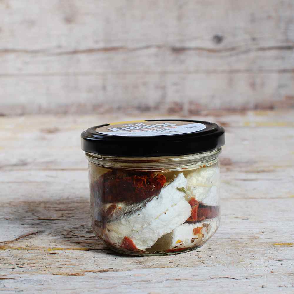 Die cremigen Schafkäse Scheiben werden in Sonnenblumenöl eingelegt und verfeinert mit verschiedensten aromatischen Kräutern – einfach immer ein Genuss