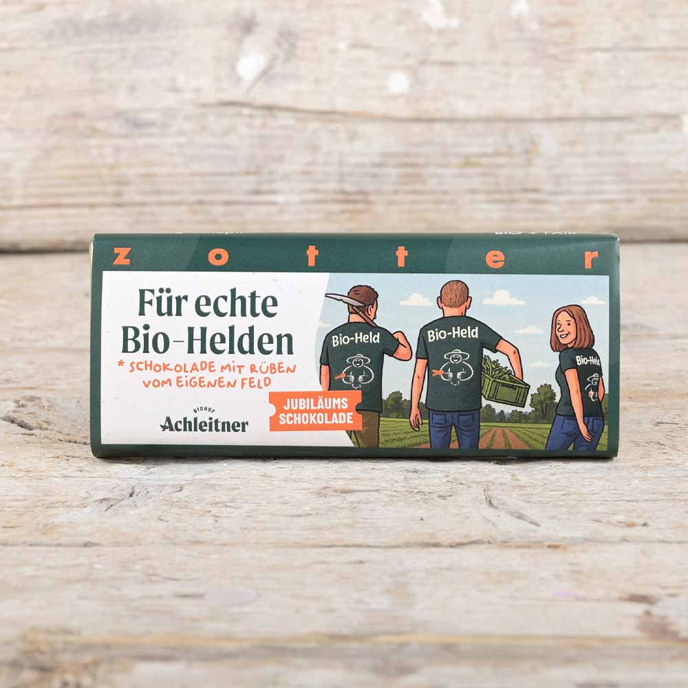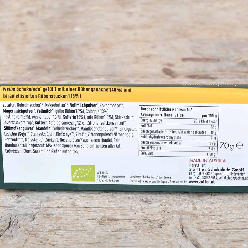Die Achleitner Edition der Zotter Schokolade ist mit roten Rüben verfeinert und hat einen kräftig süßen Geschmack.