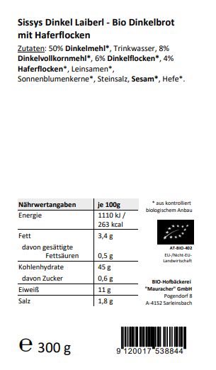 Sichtbarer Preis ist bereits abzgl. 25 % Rabatt. Sissys Dinkel Laiberl ist ein langgeführtes Dinkelbrot bestreut mit einer großen Vielfalt an schmackhaften Saaten und Flocken