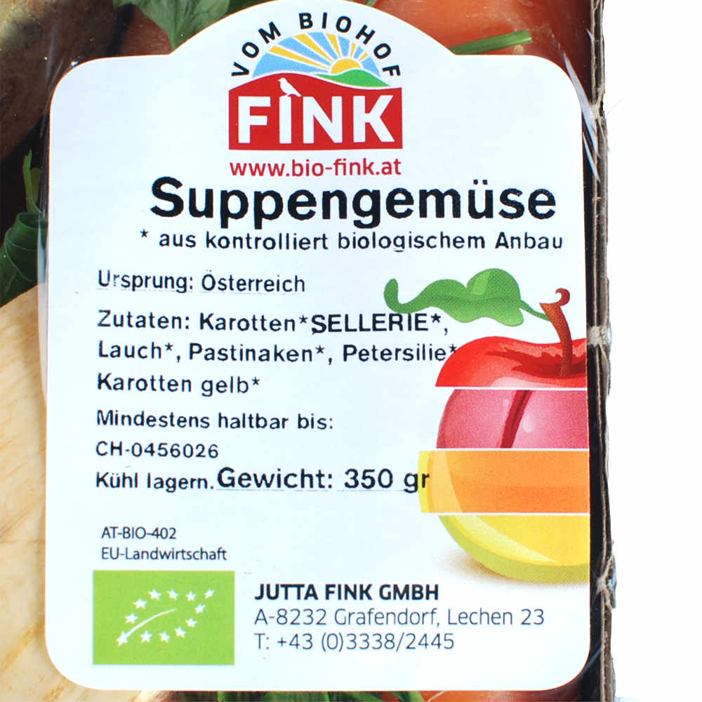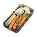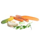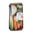 Das Suppengemüse bietet eine Mischung verschiedener Gemüsesorten (z. B. Karotten, Knollensellerie, Petersilie,...) um deine eigene Brühe herzustellen