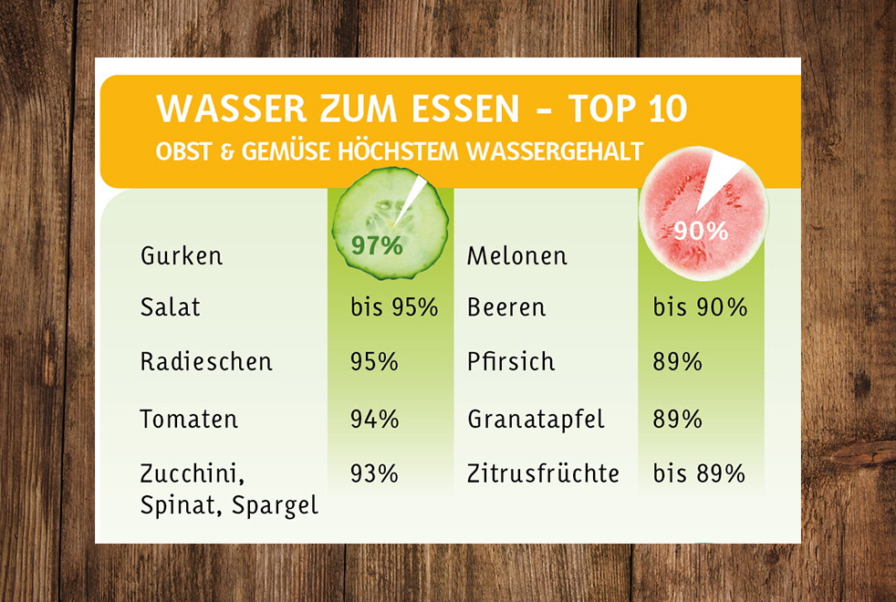 Wir haben das Obst und Gemüse mit dem jeweils höchsten Wassergehalt für euch zusammengestellt - so könnt ihr euren Lieblingsdurstlöscher auswählen...