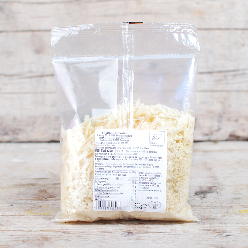 Der g'schmackige Tiroler Reibkäse ist eine Mischung aus Bergkäse und Emmentaler - mit seinem intensiven Geschmack ist er ideal für Käsespätzle