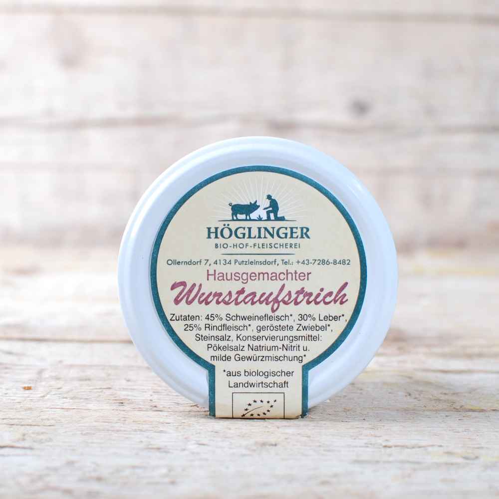 Der hausgemachte Wurstaufstrich aus bestem Schweine- und Rindfleisch macht sich wunderbar auf frischem Bauernbrot zur klassichen Jause