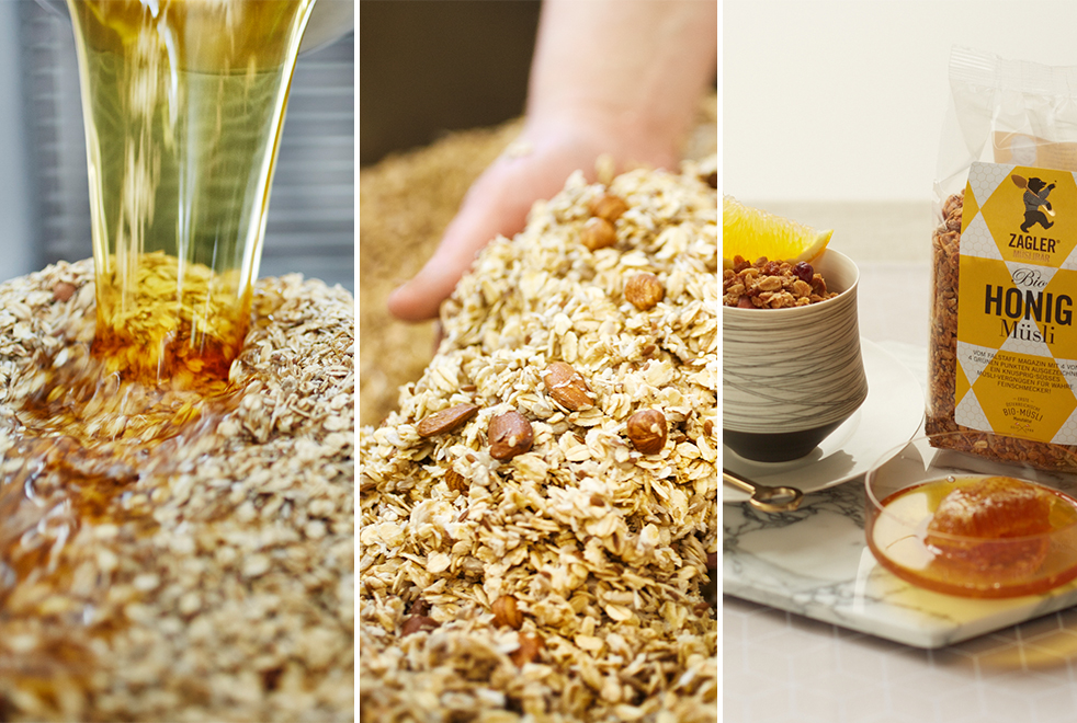 In der ersten österreichischen Bio-Müsli Manufaktur in Braunau am Inn duftet es verführerisch nach Honig, Getreide, Früchten, Nüssen und Gewürzen. Seit 2014 kreiert Florian Zagler aus besten Bio-Zutaten mit viel Sorgfalt bewährte und neue Kreationen. Das geschieht in sorgsamer Handarbeit, denn auf maschinelle Produktionsstraßen verzichtet der Müslibär ganz bewusst. "Müslis gibt es ja wie Sand am Meer, aber so wie wir sie in zeitaufwändiger Handarbeit herstellen – das tut sich sonst keiner an“, berichtet Florian stolz.