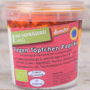Ziegenfrischkäse (80%)*, Sonnenblumenöl*, Olivenöl*, Meersalz, Käruter* (Petersilie, Oregano, Thymian, Rosmarin), Rosa Pfeffer*